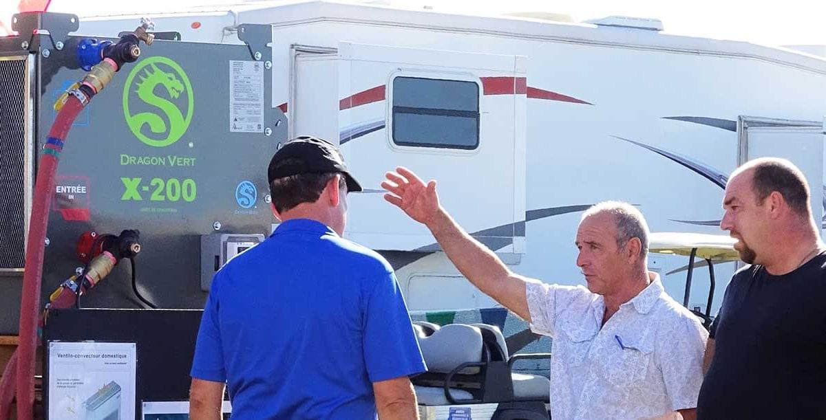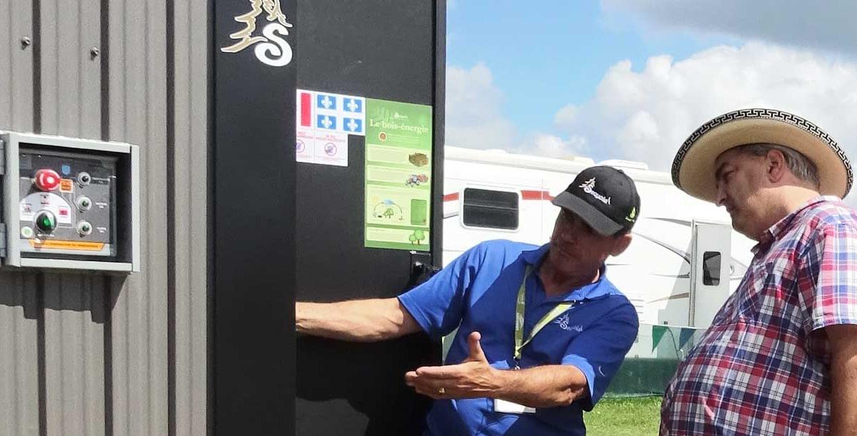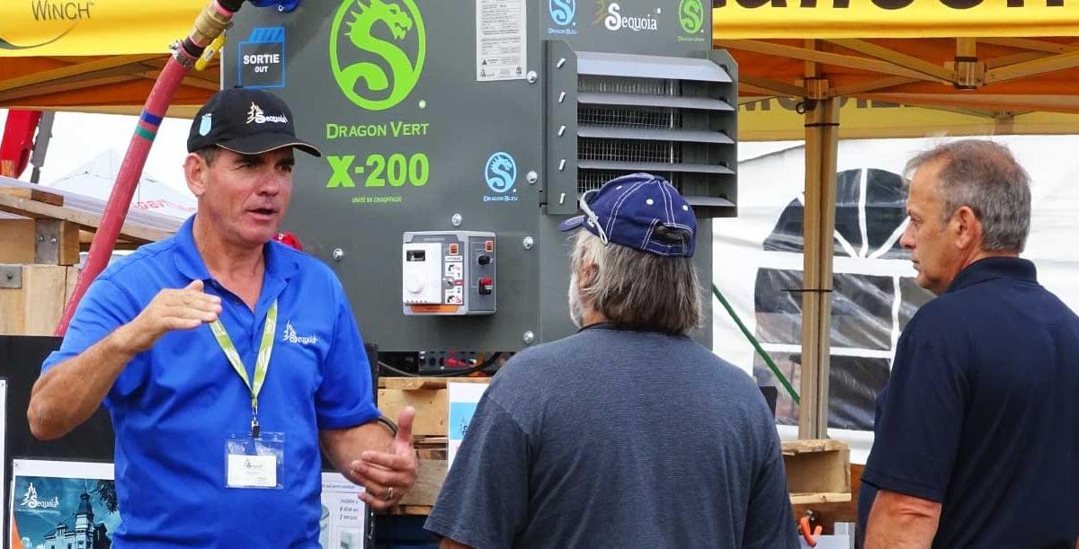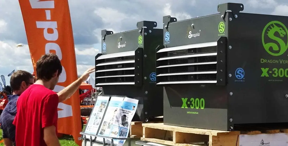 At Expo-Champs 2016, many people had the chance to see Sequoia Industries’ efficient heating equipment, designed and manufactured in Québec, in action. During the three-day tradeshow, the Blue Sky energy generator kept the sky blue, despite the blazing fire inside its combustion chamber. The intensely warm and powerful air currents from the Dragon Vert fan coils also caught the attention of visitors. And the Air Rack was a big hit, too. This storage rack, recently developed by Sequoia, has many people thinking about the importance of preparing their biomass properly.